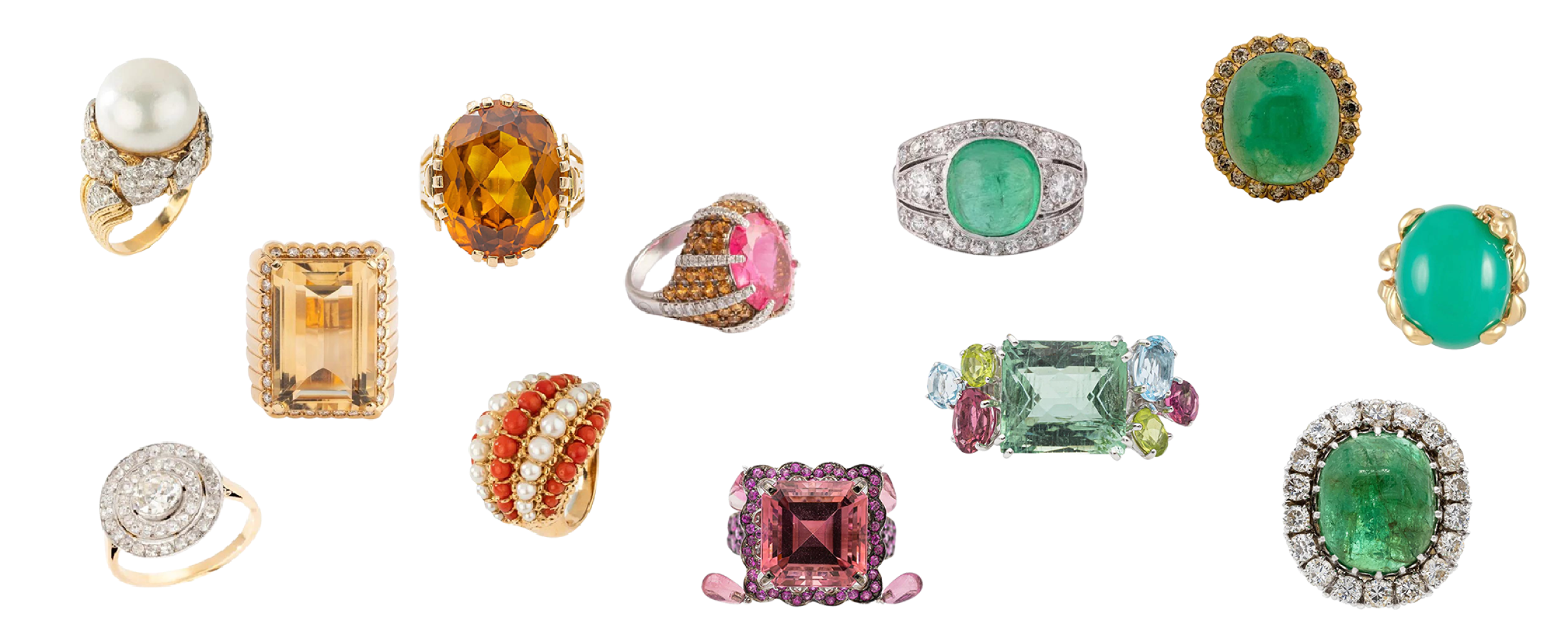 Worn on the right hand in deliberate contrast to the traditional ring finger, the cocktail ring became a symbol of female independence and a clear statement of personal purchase. Throughout the following decades of the 1940s, 50s, and 60s, the cocktail ring became a must-have accessory for women attending cocktail parties, chic restaurants, or evenings at the opera.