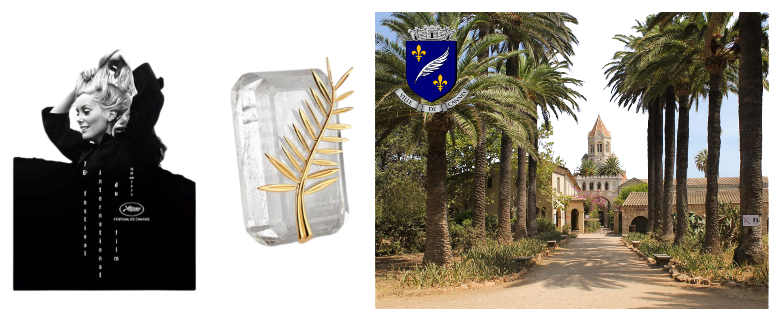 Le symbole de la palme est emprunté aux armoiries de la ville de Cannes, où elle apparaît dès le Moyen Âge. Elle évoque à la fois la victoire antique et une légende religieuse locale : celle de Saint-Honorat, ermite et fondateur de l’abbaye de Lérins, qui aurait grimpé à un palmier pour invoquer la mer et débarrasser l’île des serpents qui l’infestaient.