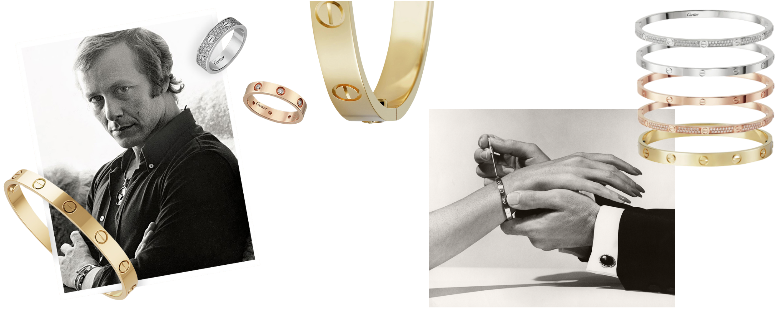 Tout a commencé en 1969, lorsque Aldo Cipullo, un designer américain d'origine italienne au cœur brisé, a conçu ces « menottes d’amour modernes » : un bracelet au design minimaliste appelé Love.