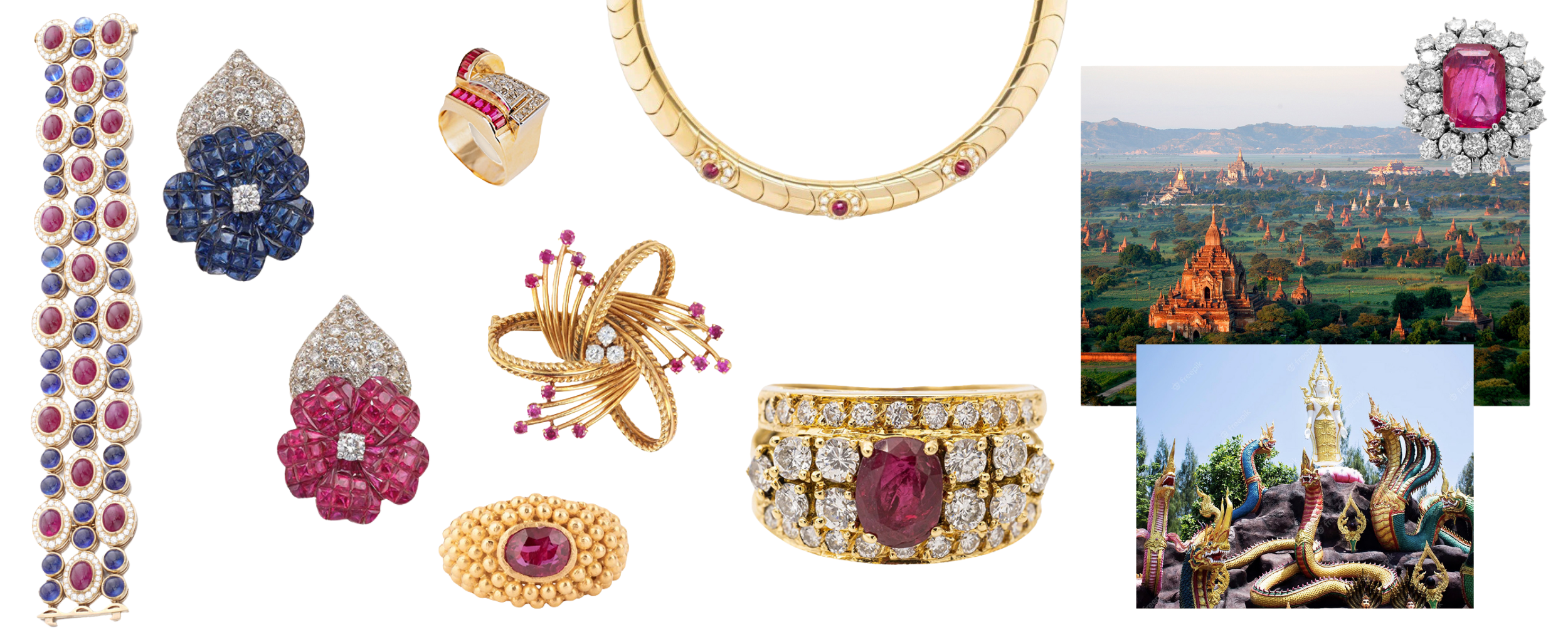Selon une ancienne légende birmane, les rubis sont les larmes du dragon, tombées des montagnes et métamorphosées en pierres précieuses, leur conférant une signification spirituelle et mystique.
