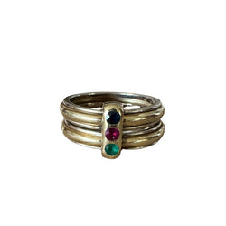 Bague YVES SAINT LAURENT en or jaune 18 carats, ornée d'un saphir, d'un rubis et d'une émeraude.