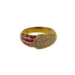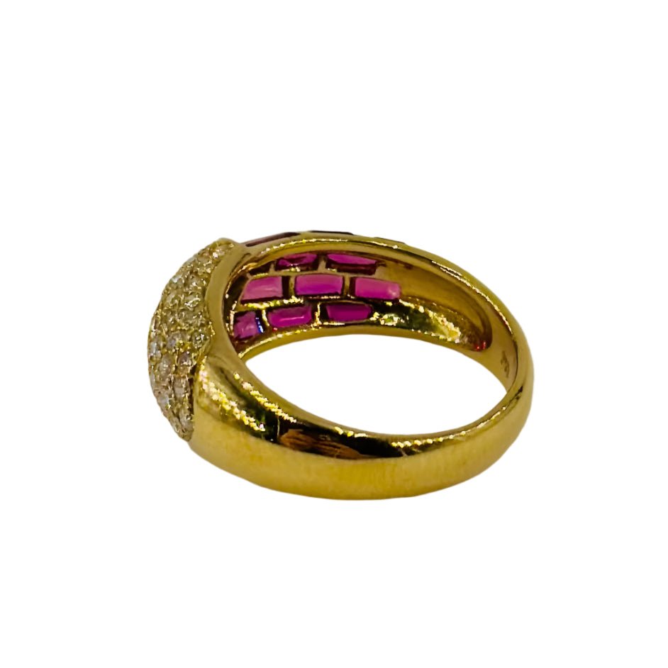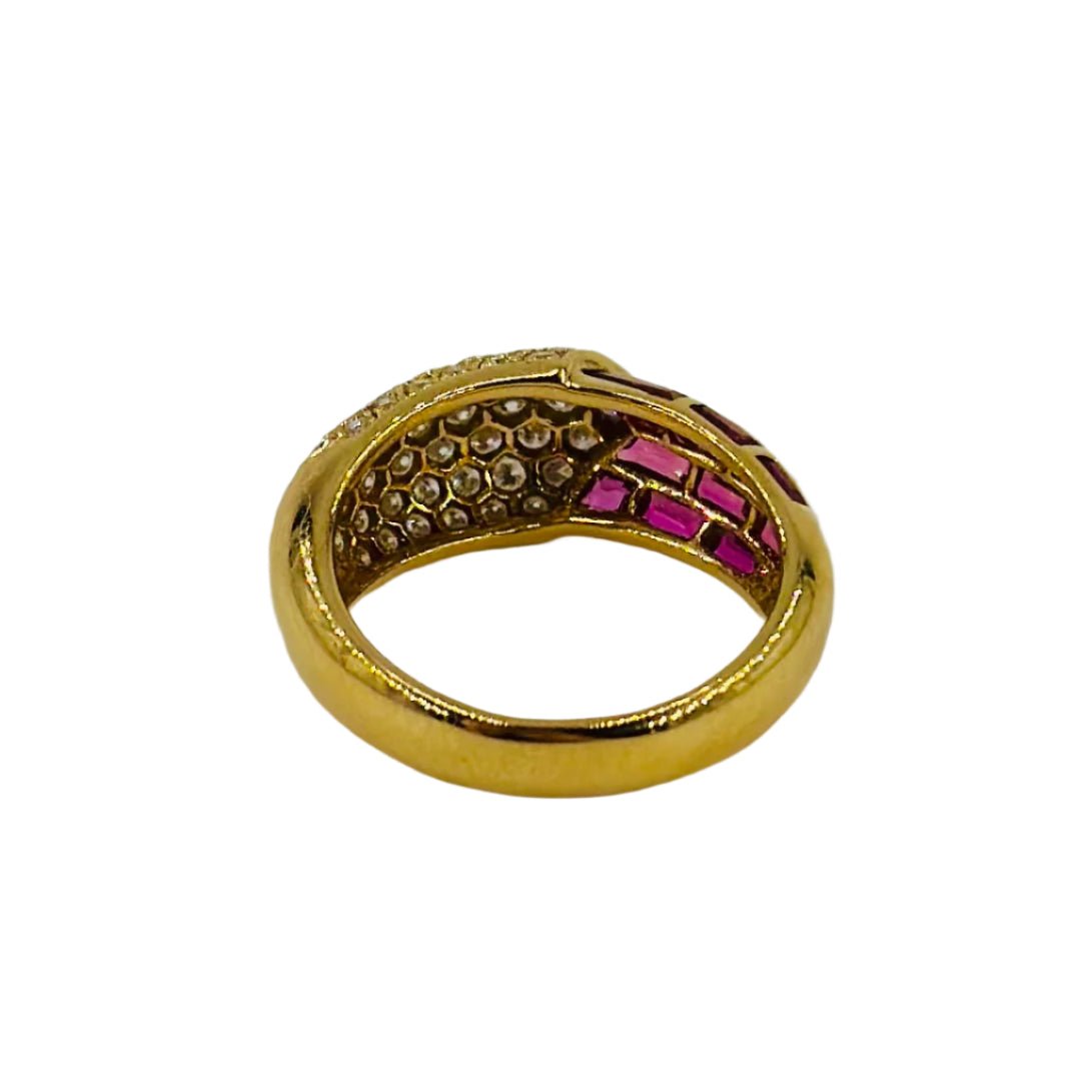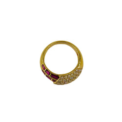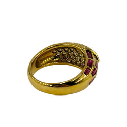 Bague Jonc en or jaune 18 carats, sertie de 12 rubis et de diamants