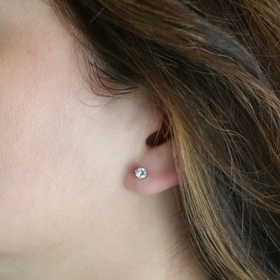 Au quotidien, une puce doit tenir en place et se faire oublier. La fermeture poussette en or blanc, en or jaune ou en argent se choisit au bon diamètre pour épouser le lobe. Sur une pierre de petit carat, un serti clos apporte de la douceur ; sur un diamant plus présent, quatre griffes raffinées laissent entrer la lumière et équilibrent la taille brillant.