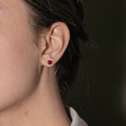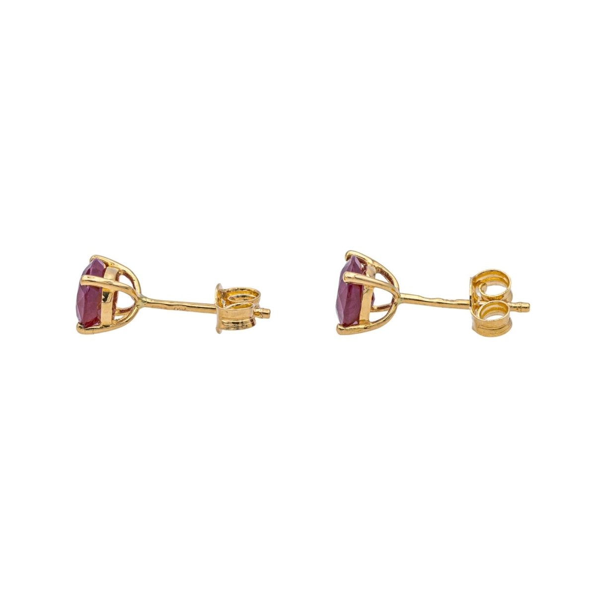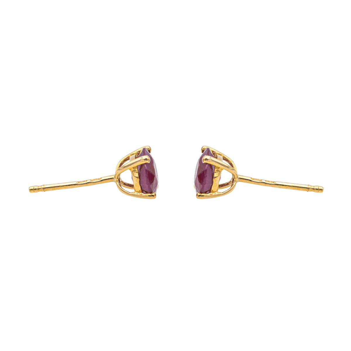Boucles d’oreilles puces en or jaune 750 millièmes (18 carats). serties de 2 rubis taille rond. poids total des rubis environ : 1.02 cts. (chaque rubis d'un poids d'environ 0.51 ct) dimensions : 0.51 cm x 0.51 cm. poids total : 0.73 g. excellent état