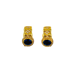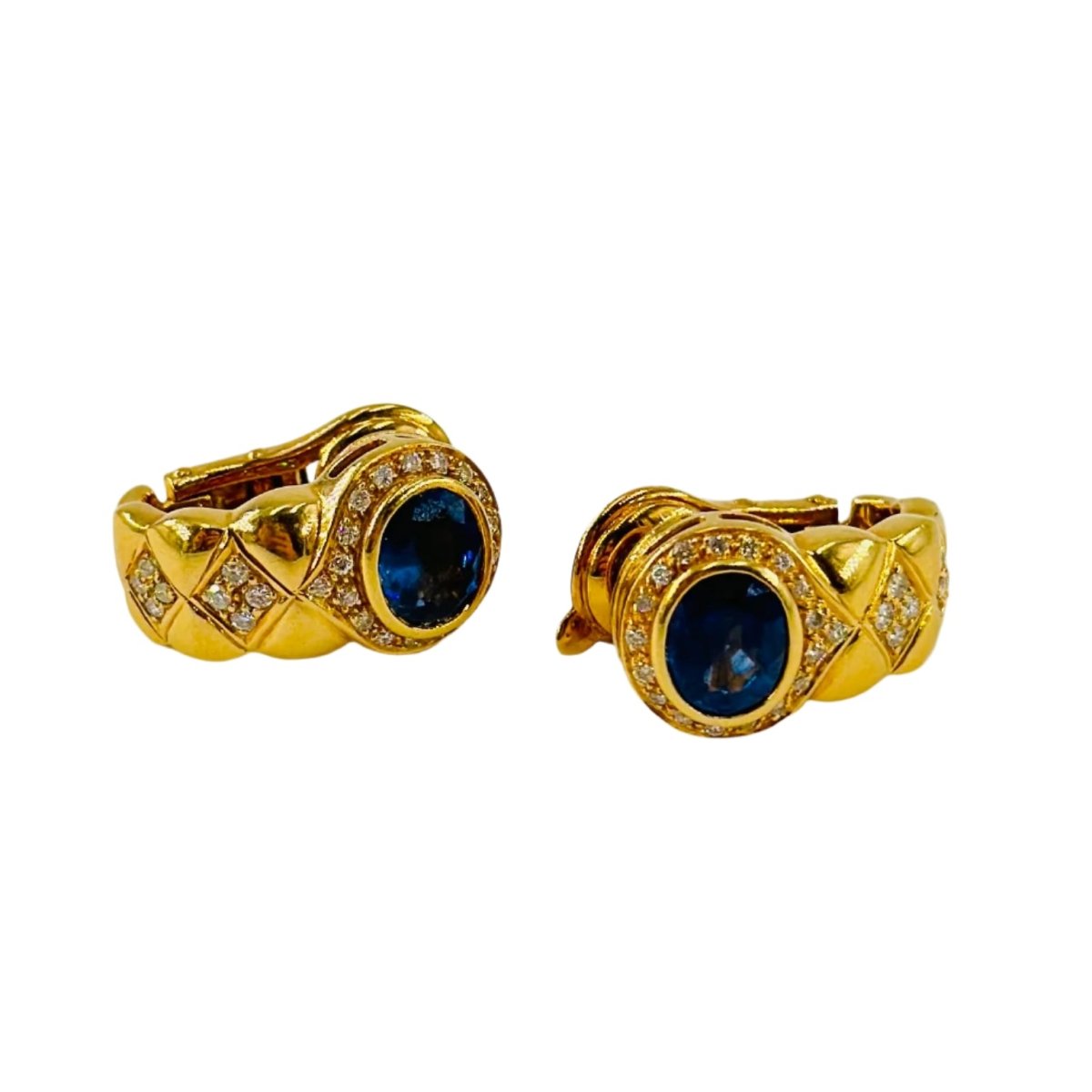 Boucles d'oreilles en or jaune 18 carats, la monture sertie de diamants et d'un important saphir.