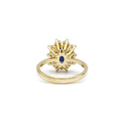 Bague marguerite en or jaune 750‰, sertie d'un saphir chauffé de 1,50 carats environ, entouré de 10 diamants (0,60 carat environ), qualité G-H/VS. Tour de doigt : 49 Mise à taille possible.