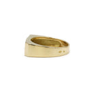 Bague chevalière en or jaune 750‰, sertie d'un saphir taille carrée d'environ 0,10 carat. Serti d'un petit diamant brillant. Tour de doigt : 60 Mise à taille possible. Poids : 8,45 grs
