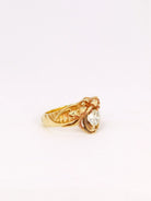 Bague chimère or jaune diamant taille ancienne Bague en or 18k (750°/°°) figurant une tête de chimère qui tient entre ses crocs un diamant taille ancienne "Old European Cut" pesant environ 0,95 carat de qualité estimée LM VVS. A noter plusieurs égrisures marquées sur le diamant. Travail probablement français circa 1890. Très belle qualité de ciselure rappelant le travail de maisons prestigieuses comme Wiese ou Plisson et Hartz.Tour de doigt 58,5Poids brut : 12,57 grammes