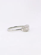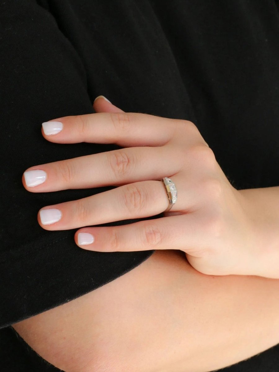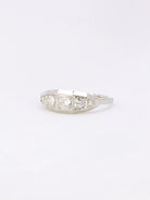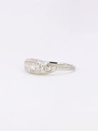 Bague jarretière Art Deco or platine diamants Bague jarretière en or blanc 18k (750°/°°) et platine sertie de diamants taille ancienne de belle qualité en chute pour un poids total d'environ 0,4 carat. La monture géométrique est typique des productions Art-Déco. Travail français circa 1925. Poinçon tête d'aigle et tête de chien pour l'or 18 carats et le platine et poinçon de fabricant de PLICHON qui a reçu une médaille d'or à l'exposition universelle de 1889. Tour de doigt 51, mise à taille possiblePoids brut : 2,74 grammes