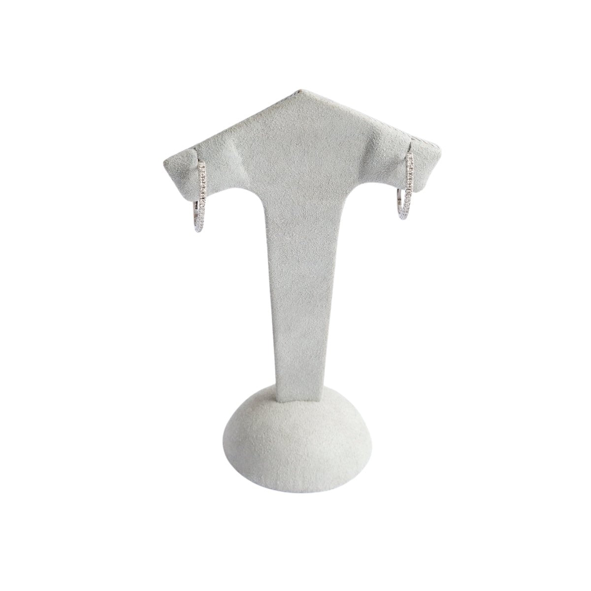 Boucles d'oreilles créoles ovales en or blanc 18 carats comportant sur l'anneau un demi-pavage de diamants. Parfait état. Poids brut : 3,50 g