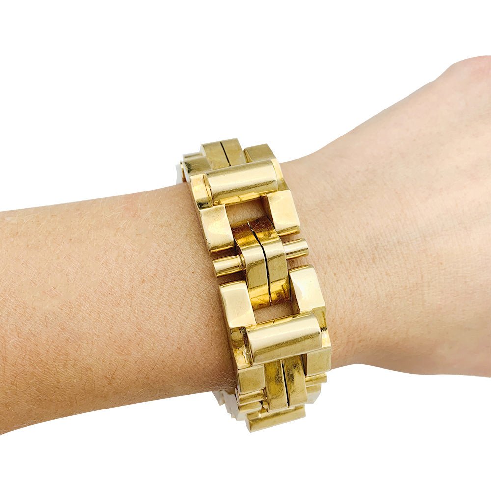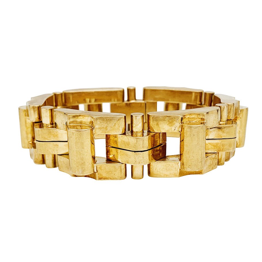 Un bracelet années 'Tank' des années 1940, en or rose 750/000. Longueur : 185 mm Largeur : 19 mm Poids : 92.2 grammes