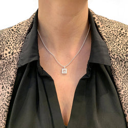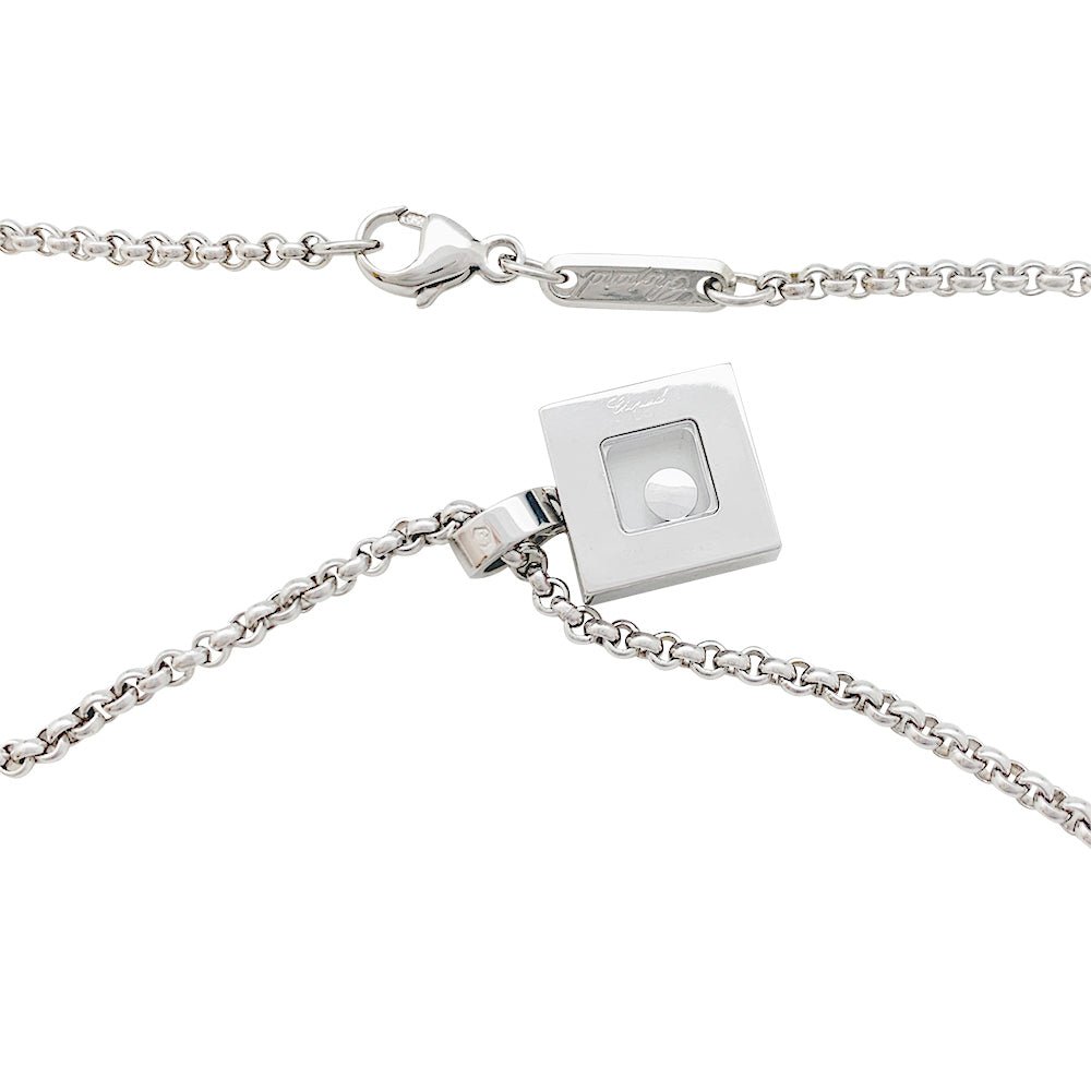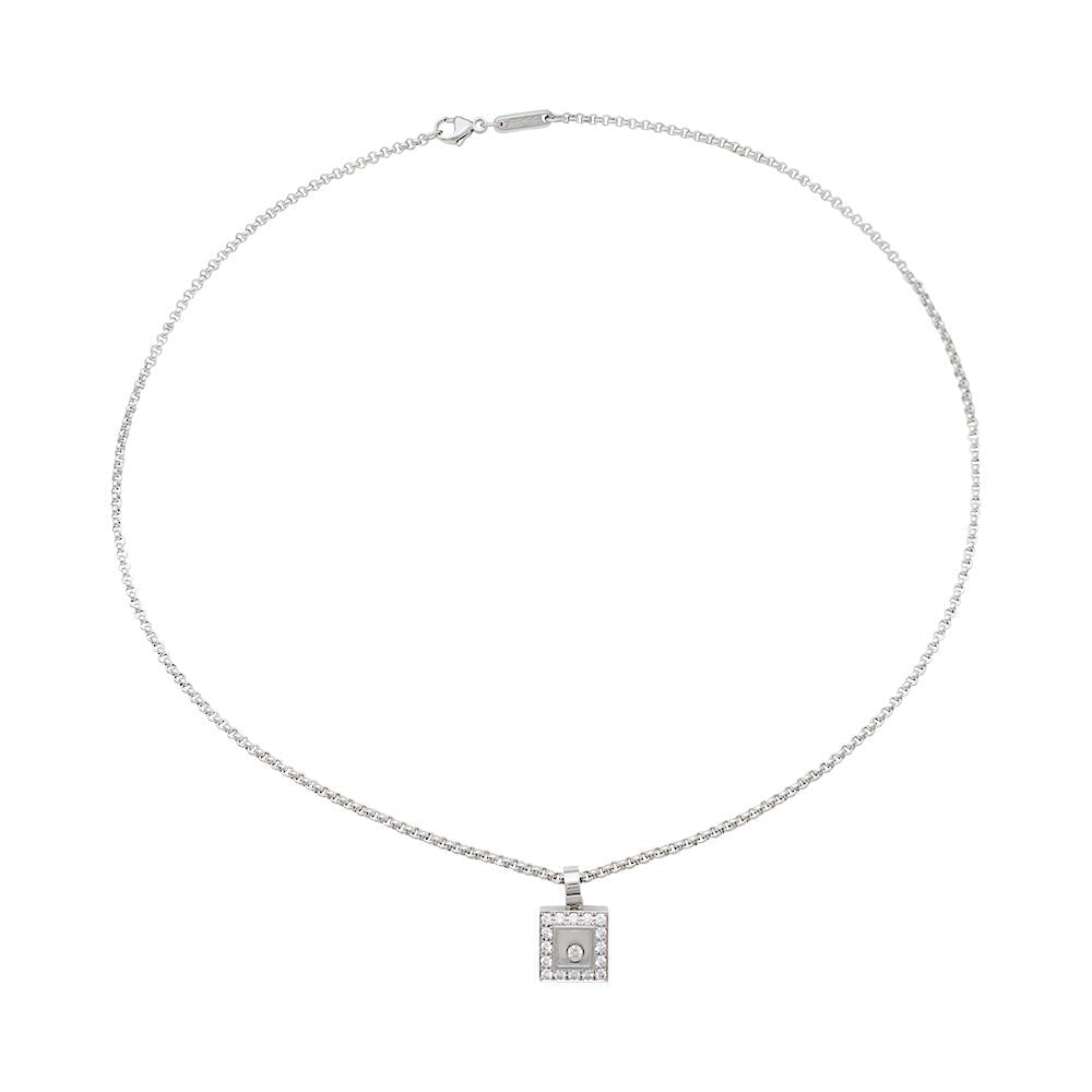 Un pendentif et sa chaîne signé de la Maison Chopard, modèle 'Happy Square Diamonds', en or blanc 750/000 serti de diamants dont un mobile sous vitre. Longueur : 420 mm Largeur : 10 mm Poids : 13,2 grammes Poids du diamant : environ 0,30 carat