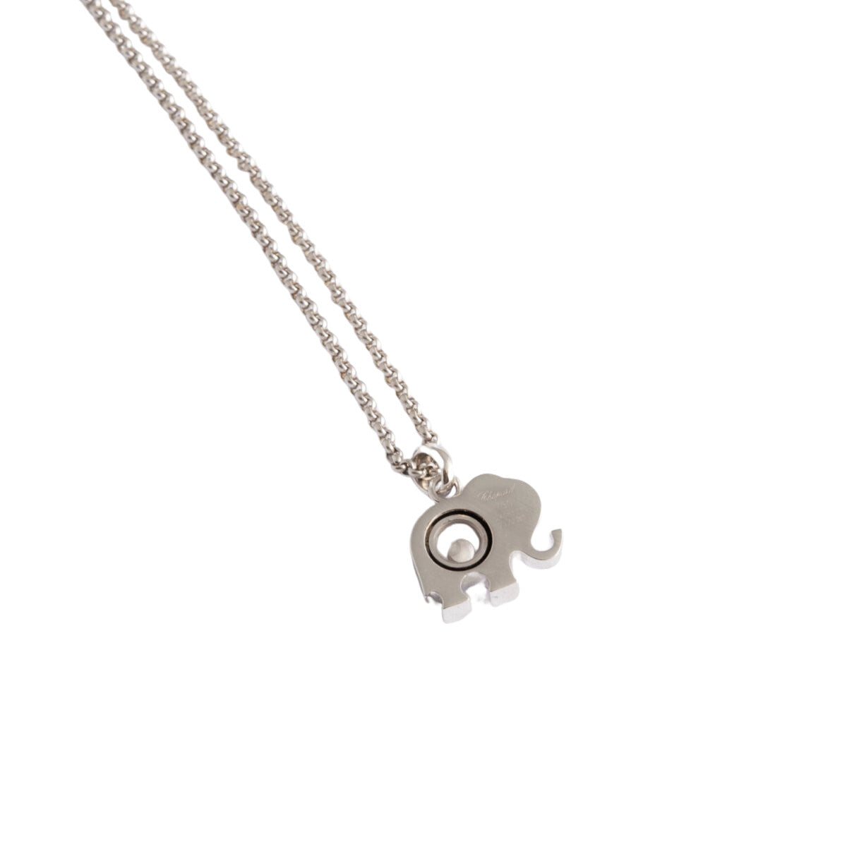 Collier CHOPARD "Happy diamonds" en or blanc 18 carats et son pendentif figurant un éléphant orné d'un diamant. Poids brut : 14,26 g. Longueur de la chaîne : 40 cm. Très bon état