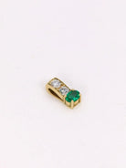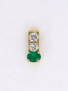 Pendentif or émeraude ovale diamants Pendentif en or 18k (750°/°°) composé de deux diamants de très belle qualité (DE VVS) calibrant environ 0,27 carat chacun et d'une émeraude ovale vivid green pesant environ 0,45 carat. Hauteur : 1,5 cmPoids brut : 2,55 grammes