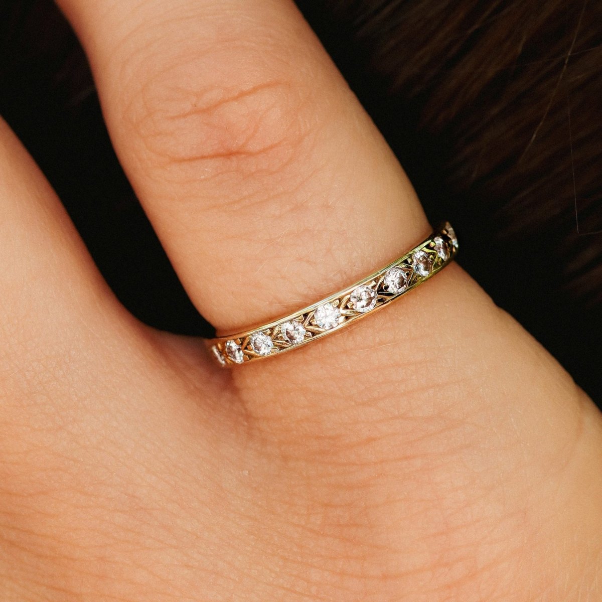Half wedding ring in yellow gold and diamonds 18 carats – 750 thousandths Finger size 52 mm Ring width 2.5mm Gross weight 2.4 gr