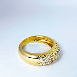 Domed ring in 18-carat yellow gold - 750 thousandths and diamonds Finger size 52 Ring width 6 mm 31 diamonds for an average total weight of 0.45 carats Gross weight 6.1 g Polished, Authenticity and quality controlled, Refurbished
