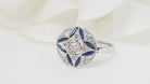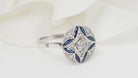 Art Deco ring in white gold, calibrated sapphire and diamonds