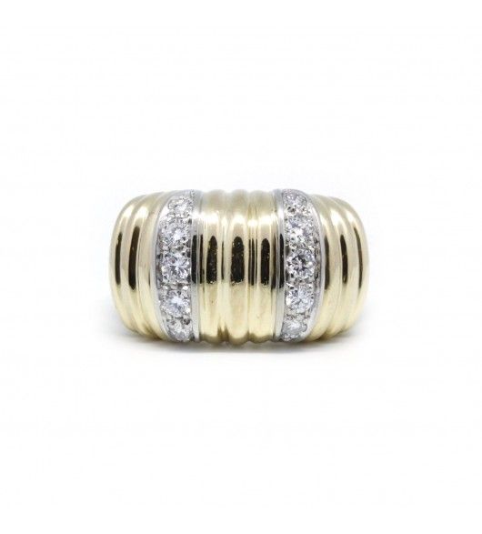 750 yellow gold ring set with 10 G/VS quality “brilliant cut” diamonds with a total weight of approximately 0.20 carat. Finger size: 55 Possible resizing.
