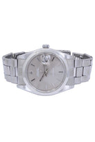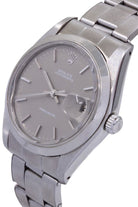 Brand Rolex Model Oysterdate Precision Reference number 6694 SKU 099871 Movement Manual winding Case Steel Strap material Steel Year of manufacture 1975 Condition Used (Good) The item shows visible and perceptible signs of wear such as scratches, scuffs or small dents. Scope of delivery Without original box, without original papers Gender Watch male/unisex Location France, Bordeaux Price 3 100 € Availability Item is in stock Caliber Movement Manual winding Caliber/Gears 1225 Power reserve 40 h Number of stones 17 Case Case Steel Diameter 34 mm Waterproof 10 ATM Bezel material Steel Glass Plexiglas Dial Gray Dial numerals Dash / stick Bracelet Strap material Steel Bracelet color Steel Buckle Pleats Buckle material Steel Functions Date Other Other features Center seconds, Screw-down crown, Original condition/Original parts