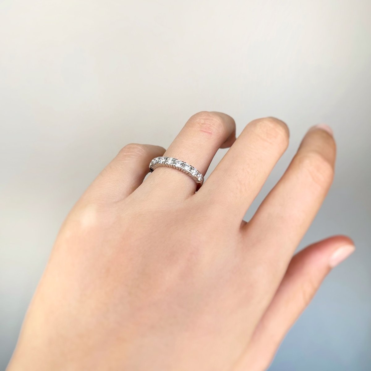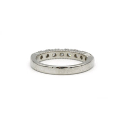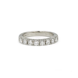 Half wedding ring signed De Beers in 950‰ platinum, set with 7 diamonds (approximately 0.65 carat) E VVS quality. Finger size: 51 Unable to resize. Weight: 5.30 grs