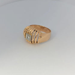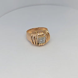 Rose gold and diamond ring 18 carats - 750 thousandths and platinum Diamond of about 2 mm Finger circumference 52 mm Ring top width: 12.5 mm Gross weight: 5.44 gr