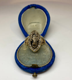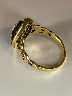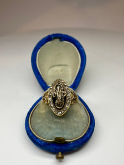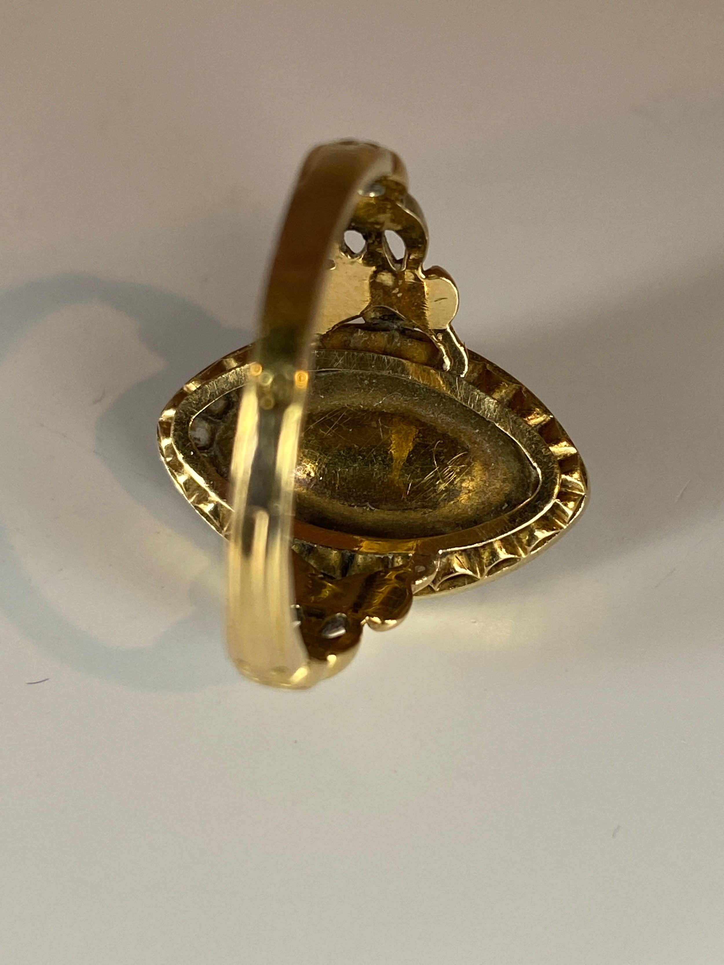 Marquise ring in 18 carat blue enamel and diamonds circa 1850