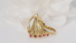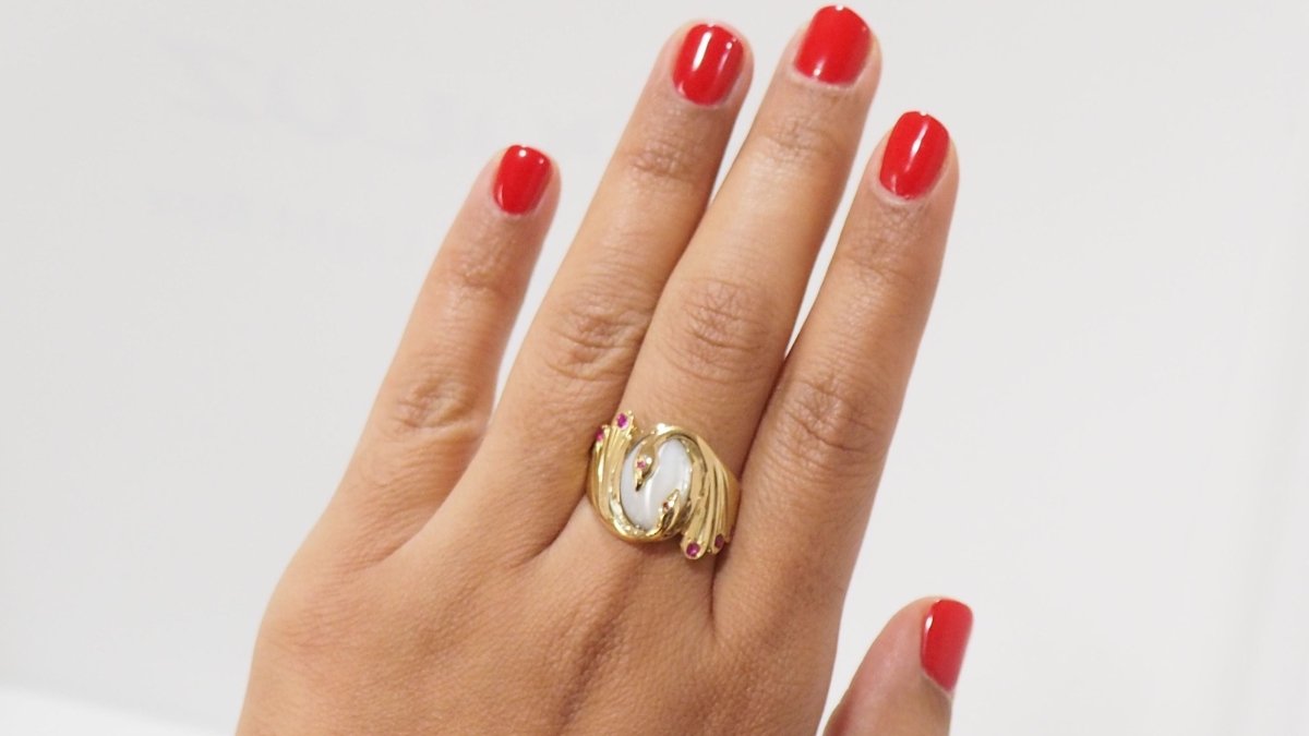 Toi et Moi ring in yellow gold, moonstone and ruby