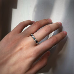 American wedding ring in 750 yellow gold. set with 9 diamonds (approximately 1.60 carats) G VS and 9 sapphires (approximately 1.60 carats). Finger size: 54 Unable to resize.