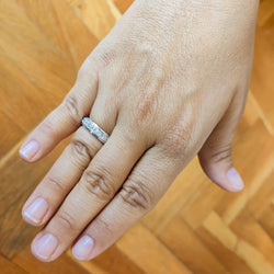 American wedding ring in white gold and diamonds 18 carats - 750 thousandths Finger size 52 mm Ring width 4.9mm 14 old cut diamonds Total diamond weight 0.3 carat Gross weight 4.7 gr