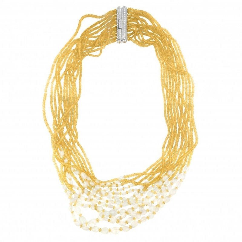 Weight: 13 Material: White gold Material: Diamond Material: Yellow sapphire Stone weight: 1.24 Stone weight: 985 Stone weight: 1.81 Number of stones: several (number unknown) Stone quality: VS Stone color: F