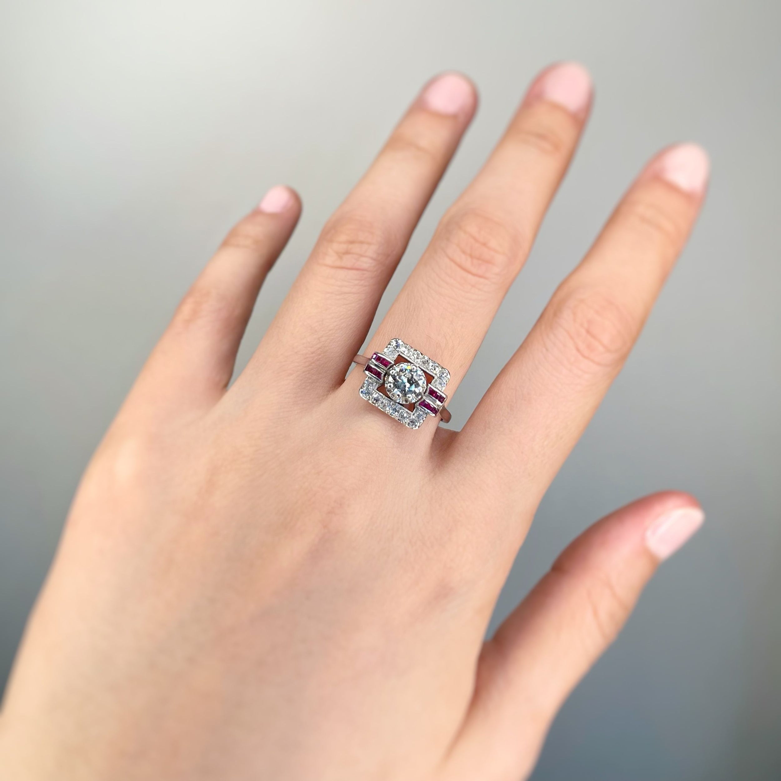 Art Deco Ring - Platinum, Diamonds & Rubies