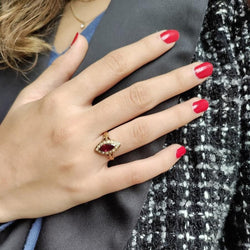 Marquise Napoleon III ring in yellow gold, garnet and pearls