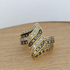 Yellow gold and diamond ring 18 carats - 750 thousandths Finger circumference 51 mm Paving of 62 white and brown diamonds of approximately 1 mm Ring head width 20 mm Gross weight 7.48 gr