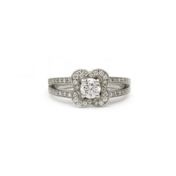 Flower-shaped ring, in 950‰ platinum set with a 0.46 carat E SI2 GIA certified diamond and 48 diamonds (0.35 carat). Finger size: 53 Possible resizing. Weight: 7.83 grams