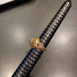 Dome ring with floral motifs in yellow gold and diamond 18 carats - 750 thousandths Finger size 54 mm Rope pattern ring body 0.15 carat brilliant-cut central diamond Ring head width 1.7 cm Height of the ring on the finger 1 cm Gross weight 10 gr