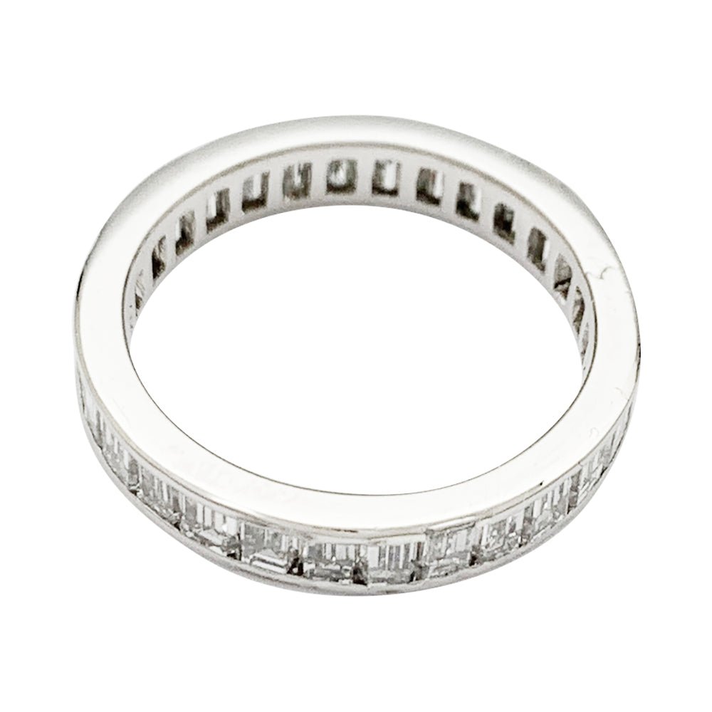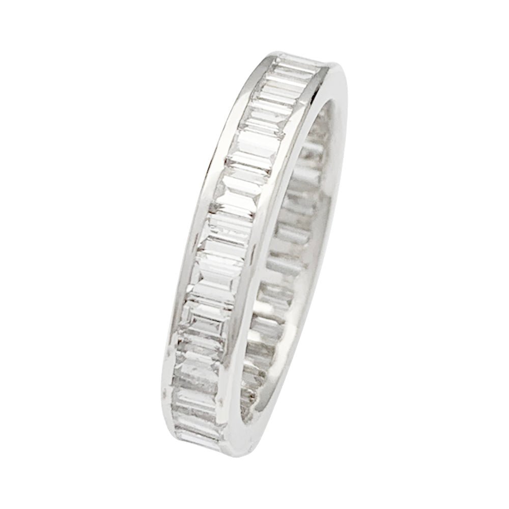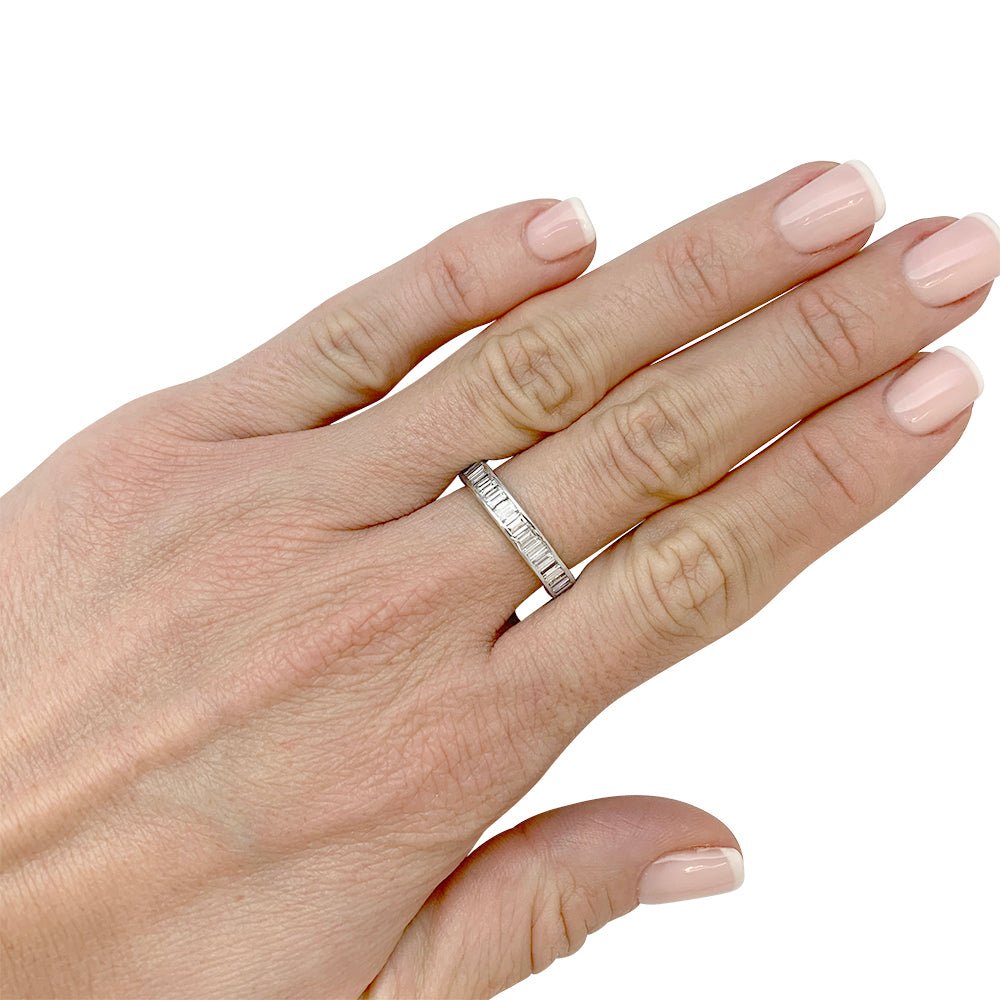 A full ring wedding ring in 950/000 platinum set with baguette-cut diamonds. Width: 3.5mm Weight: 4.1 grams Finger size: 54