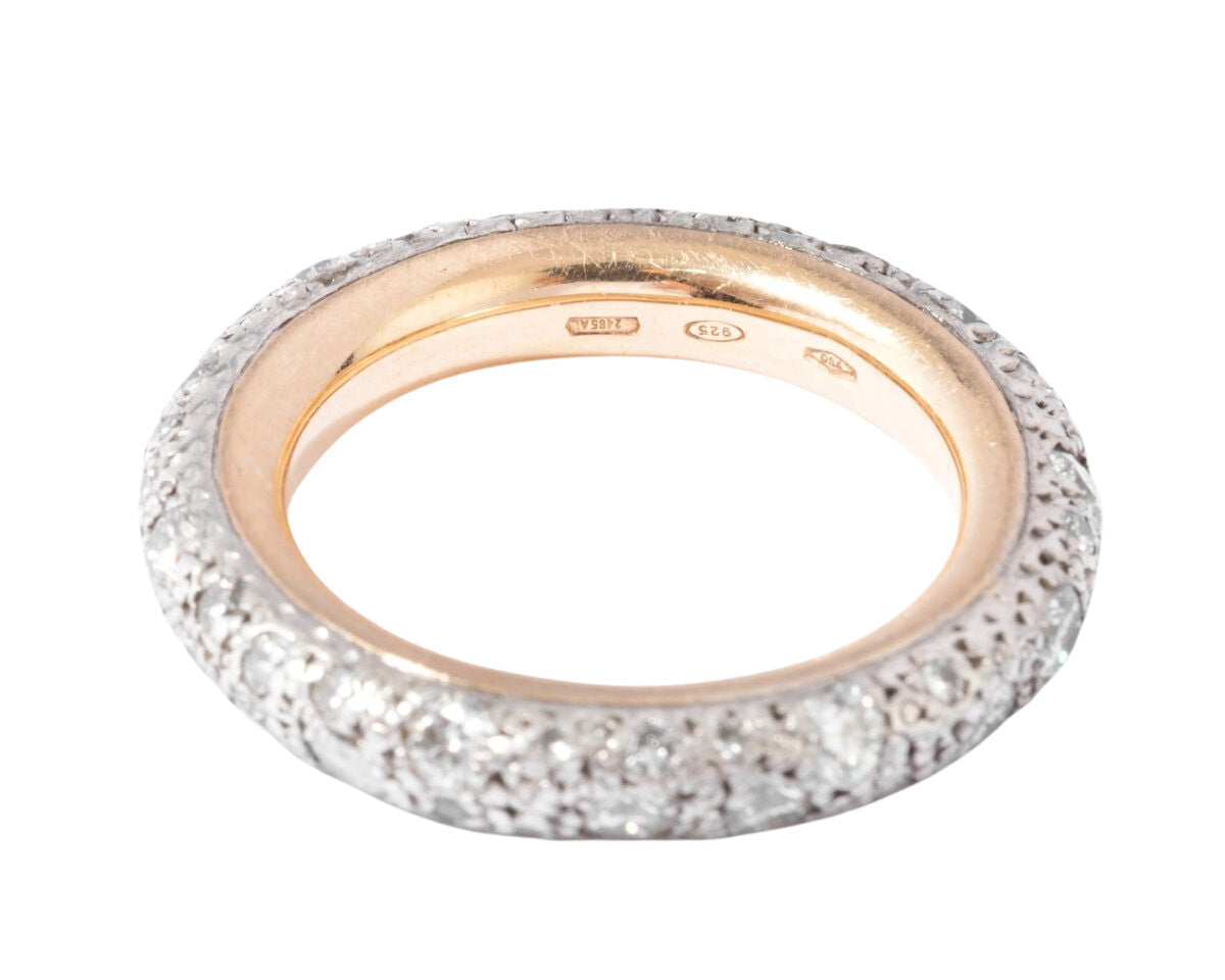 Wedding ring in burnished pink gray and brilliant-cut brown diamonds signed by Pomellato, Tango model. Material: 18k white gold Hallmark: Signature Weight: 6.3 grams Width: 0.5cm Non-modifiable finger size: 53 Carat number: 1.90 cts Period: 2010