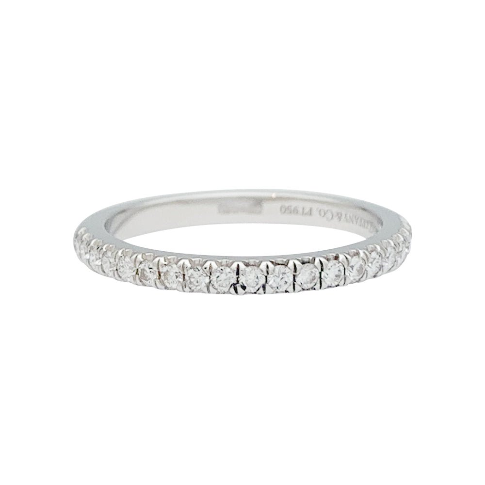 A ring signed by Maison Tiffany & Co., “Eternité demi-circle” model, in 950/000 platinum partially set with brilliant-cut diamonds. Width: 2.2mm Weight: 3 grams Diamond weight: 0.16 carat New price: 2800 Finger size: 49
