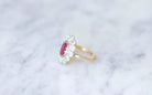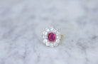 Daisy ring, unheated Burmese ruby 1.60 Cts, diamonds