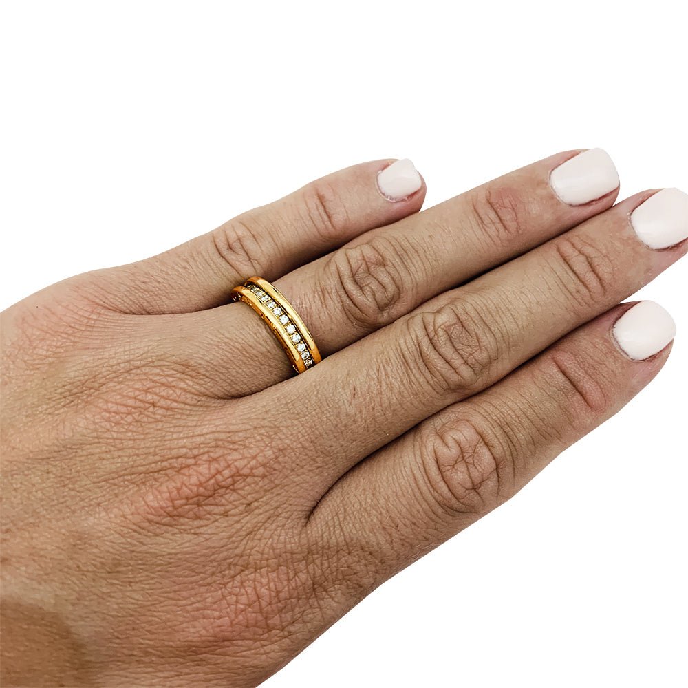 A wedding ring signed by Maison Bulgari model 'B.Zéro1' in 750/000 yellow gold set with a line of brilliant-cut diamonds. Width: 4mm Weight: 7.1 grams New price: 5800 Finger size: 50