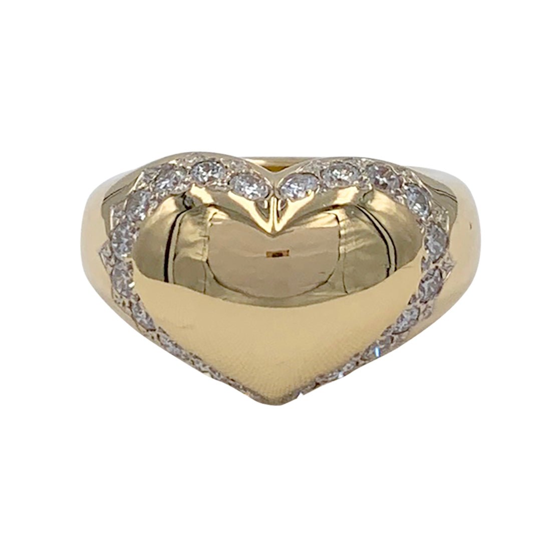 CHAUMET “Chevalière Coeur” signet ring in 18-carat yellow gold stylizing a heart enhanced with 20 brilliant-cut diamonds.