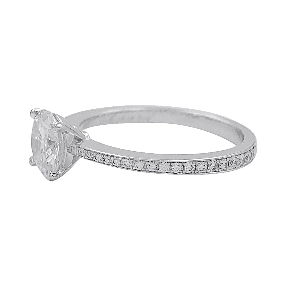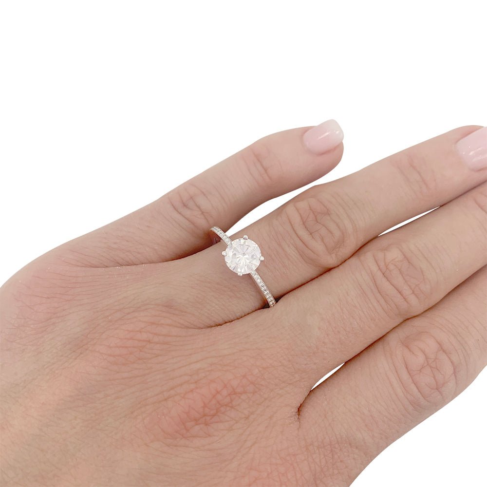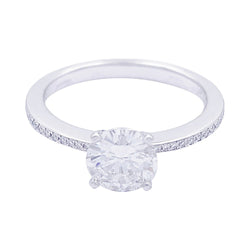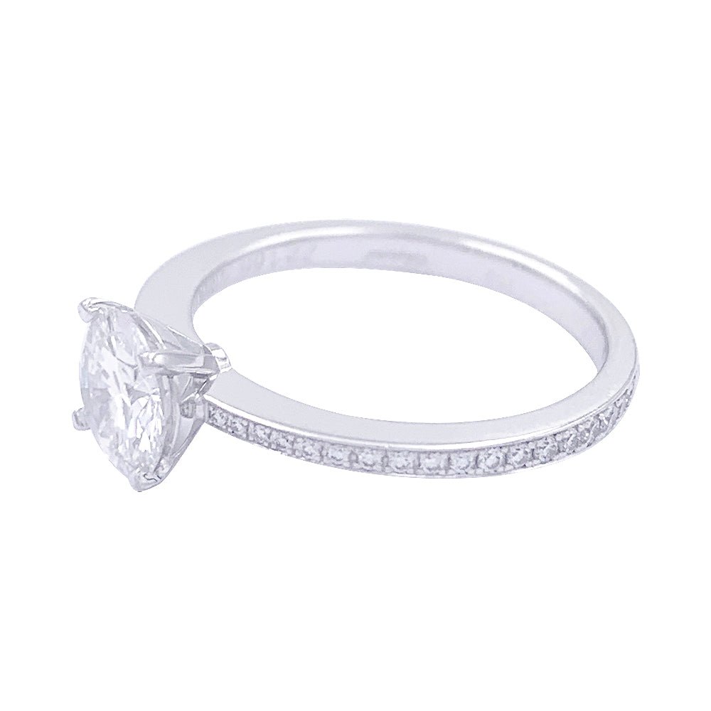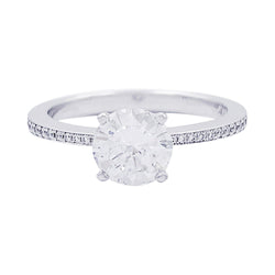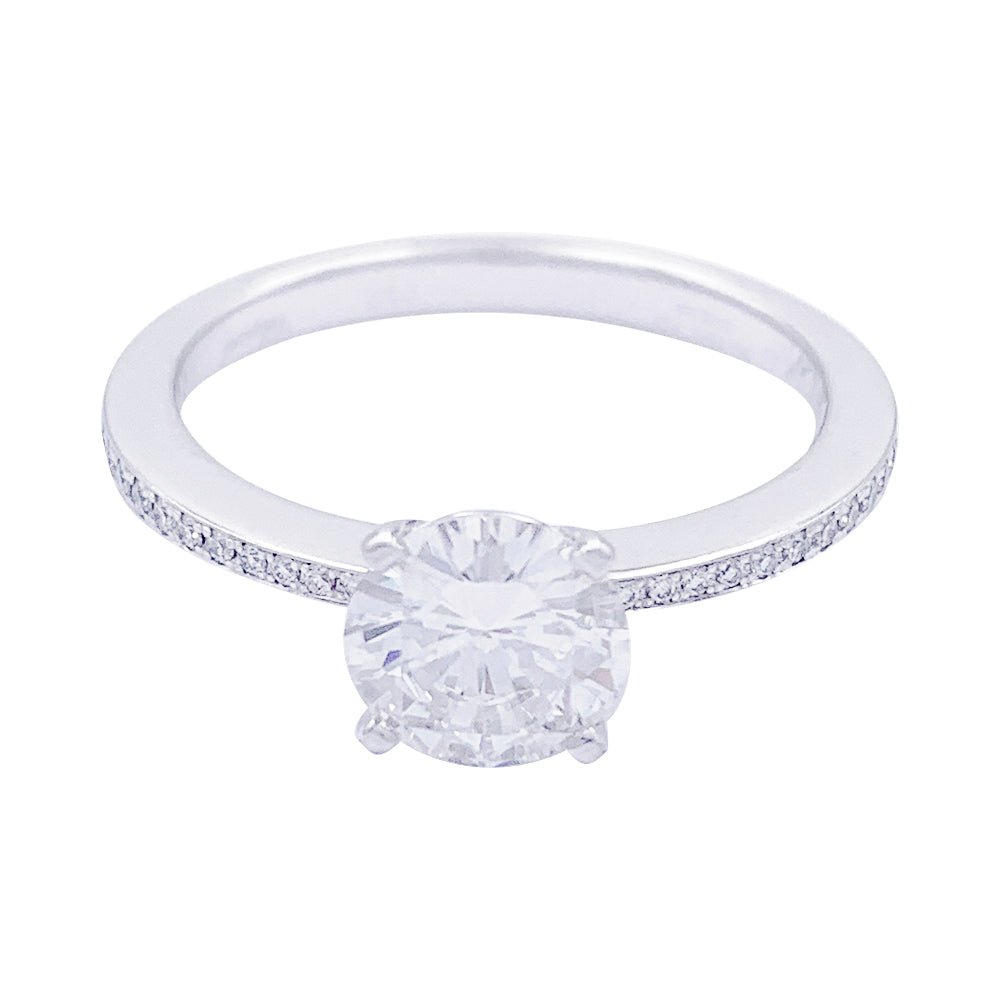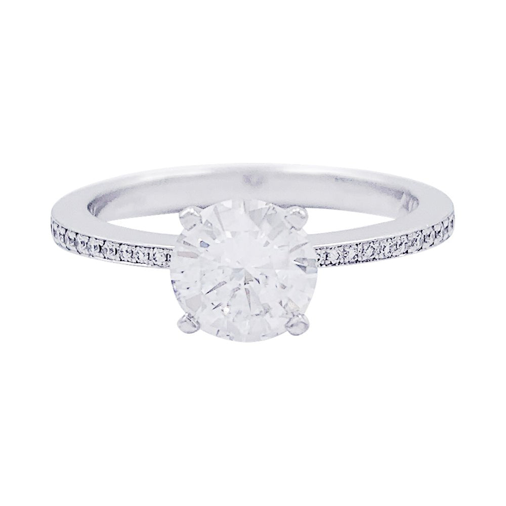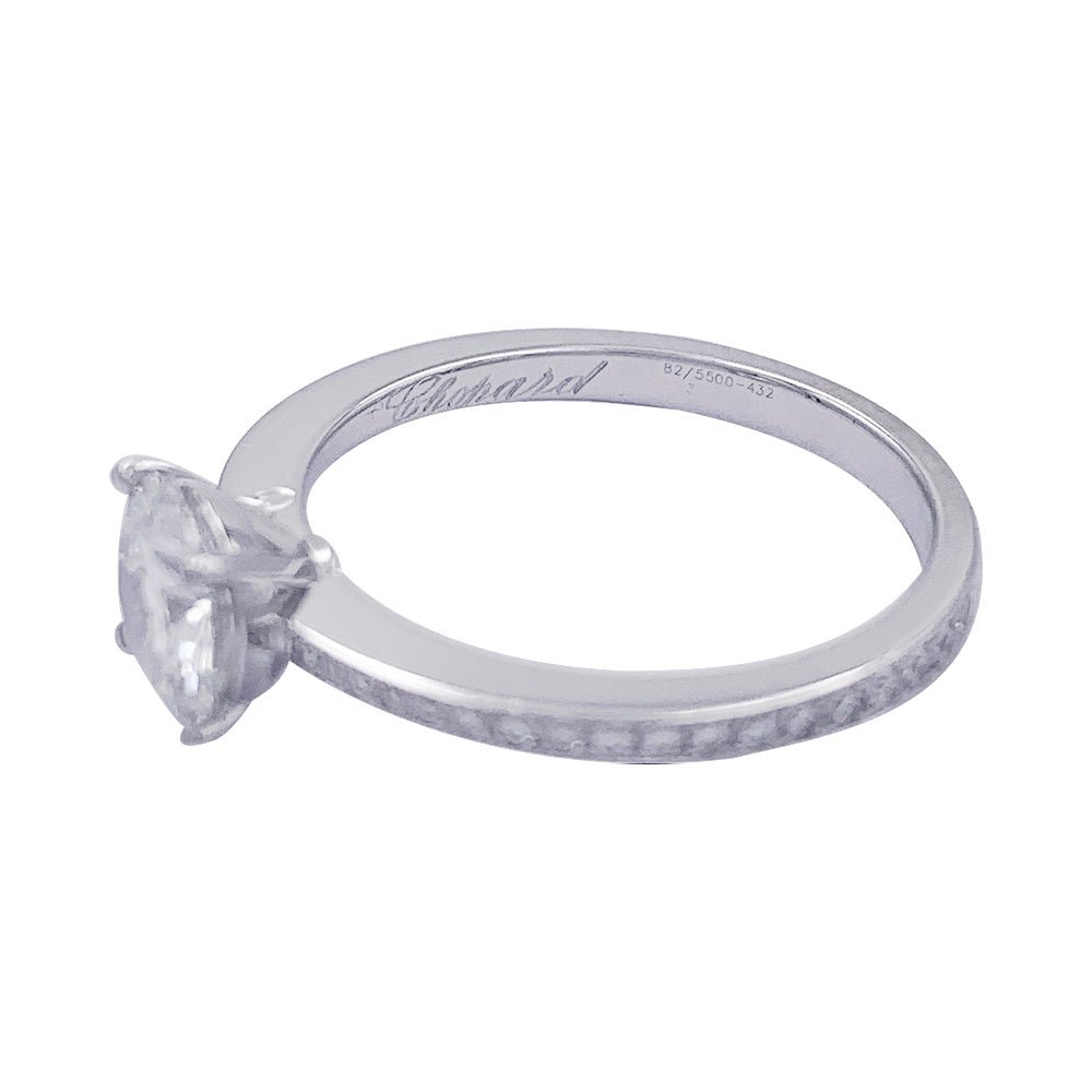 An accompanied solitaire signed by Maison Chopard in 750/000 white gold set with a 1.01 ct diamond, F/VS1 quality, supported by 36 diamonds (0.22 ct in total). GIA report. Weight: 3.2 grams Diamond weight: 1.01 ct Finger size: 54