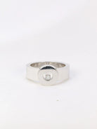 Chopard Happy Diamonds round ring in 18k (750°/°°) gold and diamond. The ring holds a small mobile diamond of excellent quality. Signed Chopard. Finger size 55 Gross weight: 14.48 grams