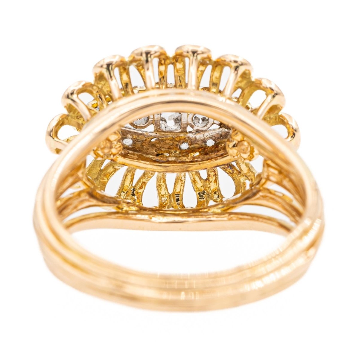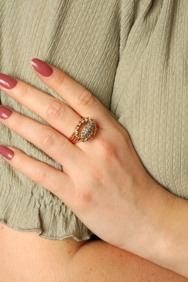 Napoleon III Cocktail Ring in 18-carat pink gold and platinum set with 19 rose-cut diamonds. Total weight: 7.99 g Total diamond weight: approximately 0.13 ct Width on top: 1.97 cm Finger size: 56 Hallmark: eagle head and dog head