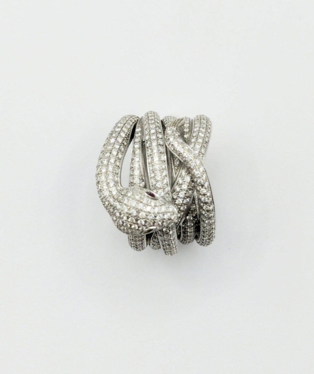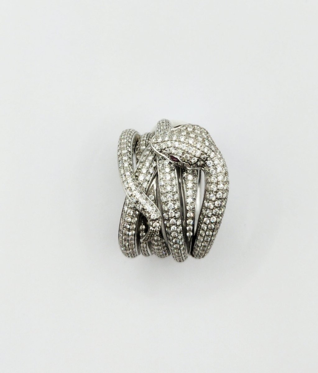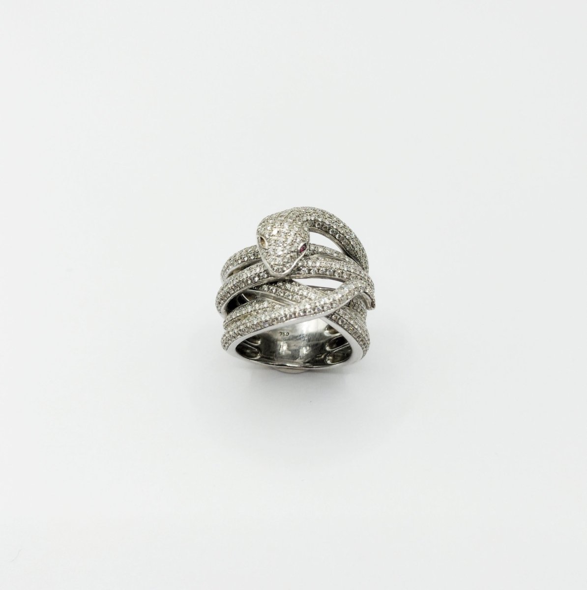 Snake ring in 18k white gold paved with diamonds. (small missing one eye). Total weight: 23.30 g Finger size: 54
