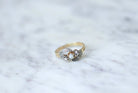 Toi et Moi engagement ring in 18Kt yellow gold and platinum (hallmark: eagle's head), decorated in its center with two rose-cut diamonds, arranged on either side of a pearl, probably fine, in an entourage of rose cut diamonds. French work, Belle Époque, Circa 1900. Gross weight: 2.33g Finger size: 56 (diameter 17.75 / US 7.50) Pattern height: 0.90 cm Condition: very light micro scratches and oxidation on the gold and platinum parts, slight wear of the setting, natural inclusions in the stones, see photos. The 18th Century had a specific taste for pearls that we associate with diamonds. We then find this enthusiasm under the Second Empire, then during the Belle Epoque . All our old rings.