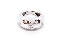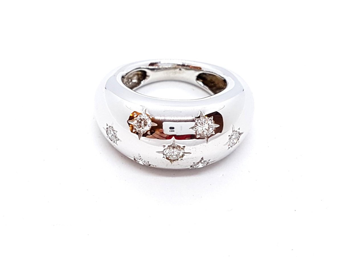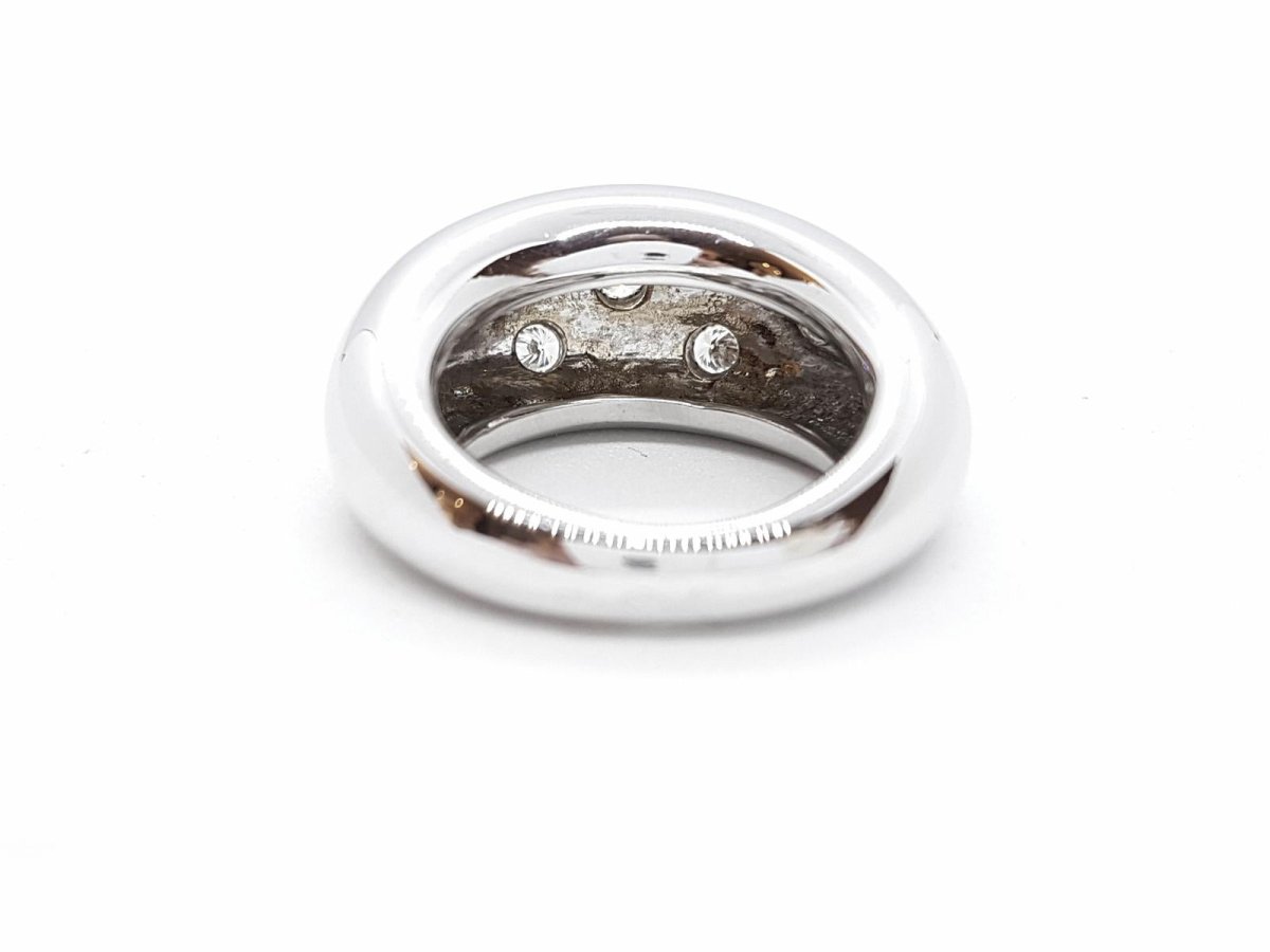 Ring in 750 thousandths (18 carat) white gold. bangle paved with 7 brilliant-cut diamonds in a star setting. a diamond of approximately 0.11 ct and 6 diamonds of approximately 0.05 ct each. total weight: 19.24 g. finger size: 52. width on top: 1.15 cm. height of the rush: 0.8 cm. punched. excellent condition