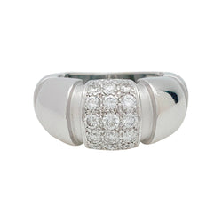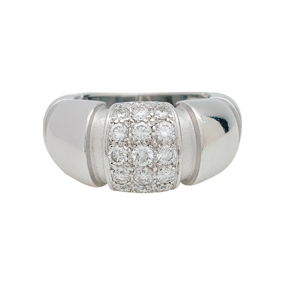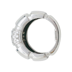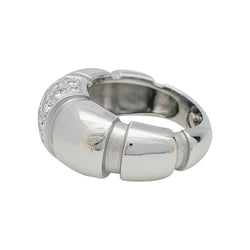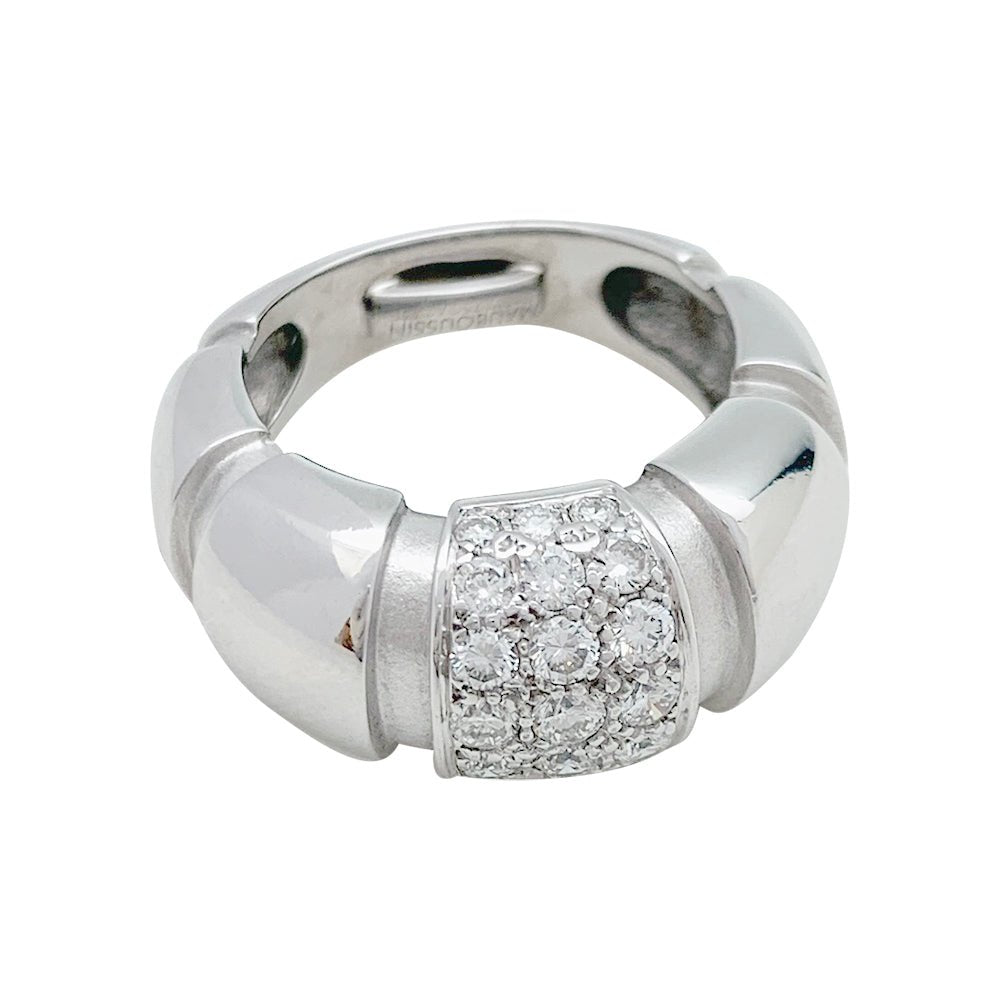 A fluted bangle ring signed Mauboussin, “Nadja” collection, in polished and satin-finished 750/000 white gold, adorned with brilliant-cut diamonds. Width: 8mm Weight: 9.4 grams Diamond weight: approximately 0.40 carat Finger size: 47