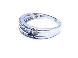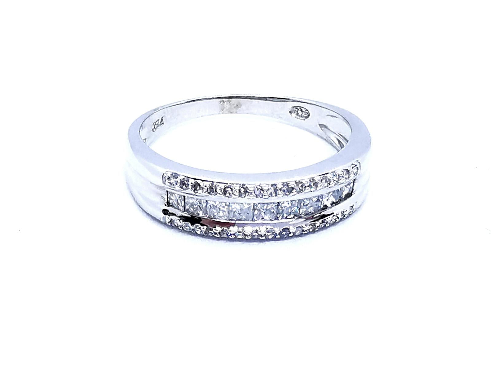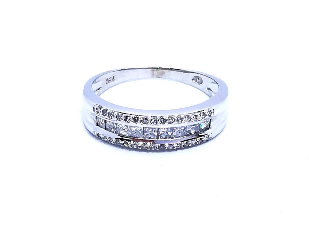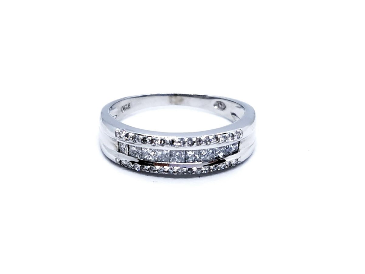 Ring in 750 thousandths (18 carat) white gold diamonds. set with 9 princess-cut diamonds for approximately 0.31 ct in total. and 30 round diamonds for approximately 0.15 ct in total. total diamond weight: approximately 0.46 ct. size: 58. width on top: 0.52 cm. total weight: 3.55 g. half-erased eagle's head hallmark. excellent condition