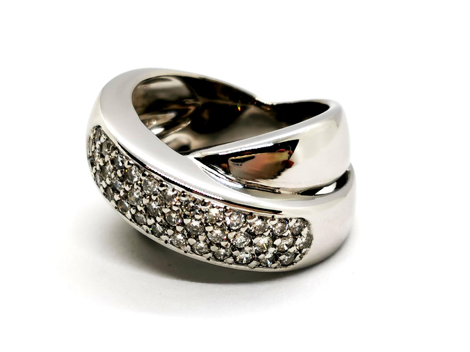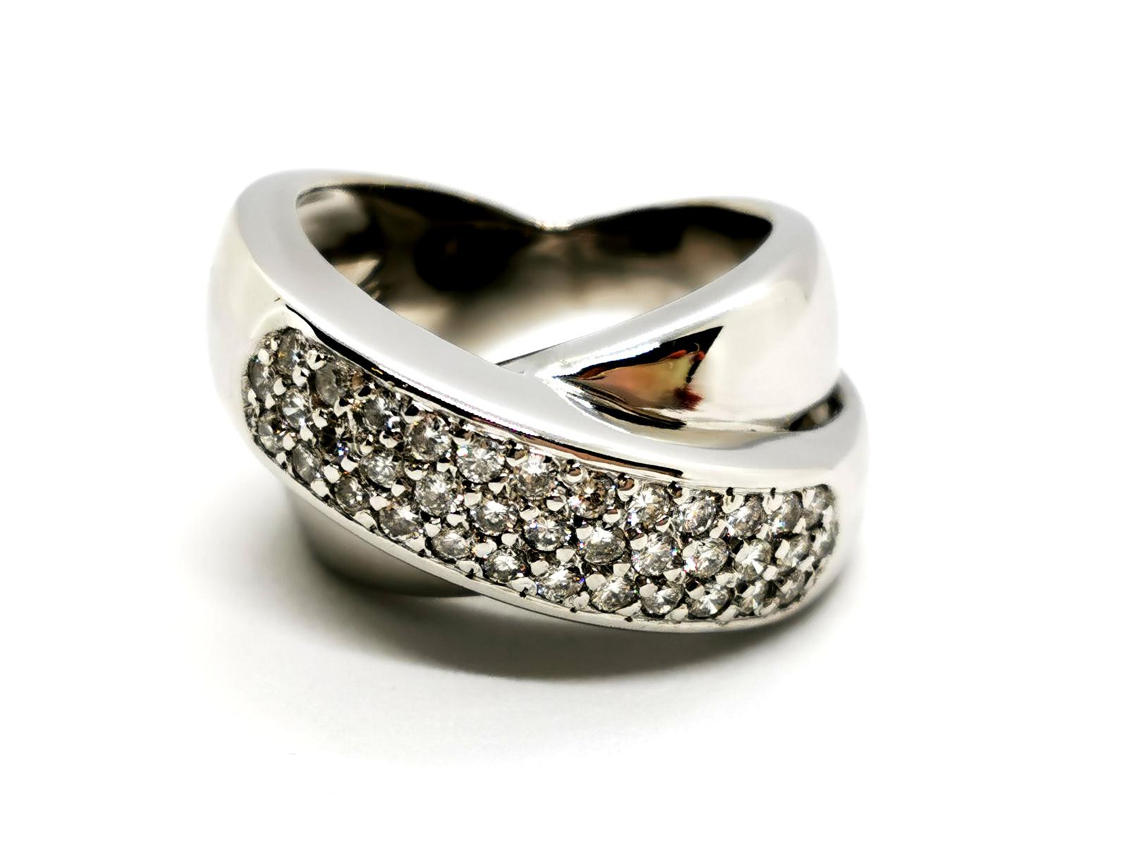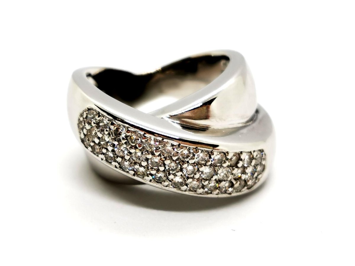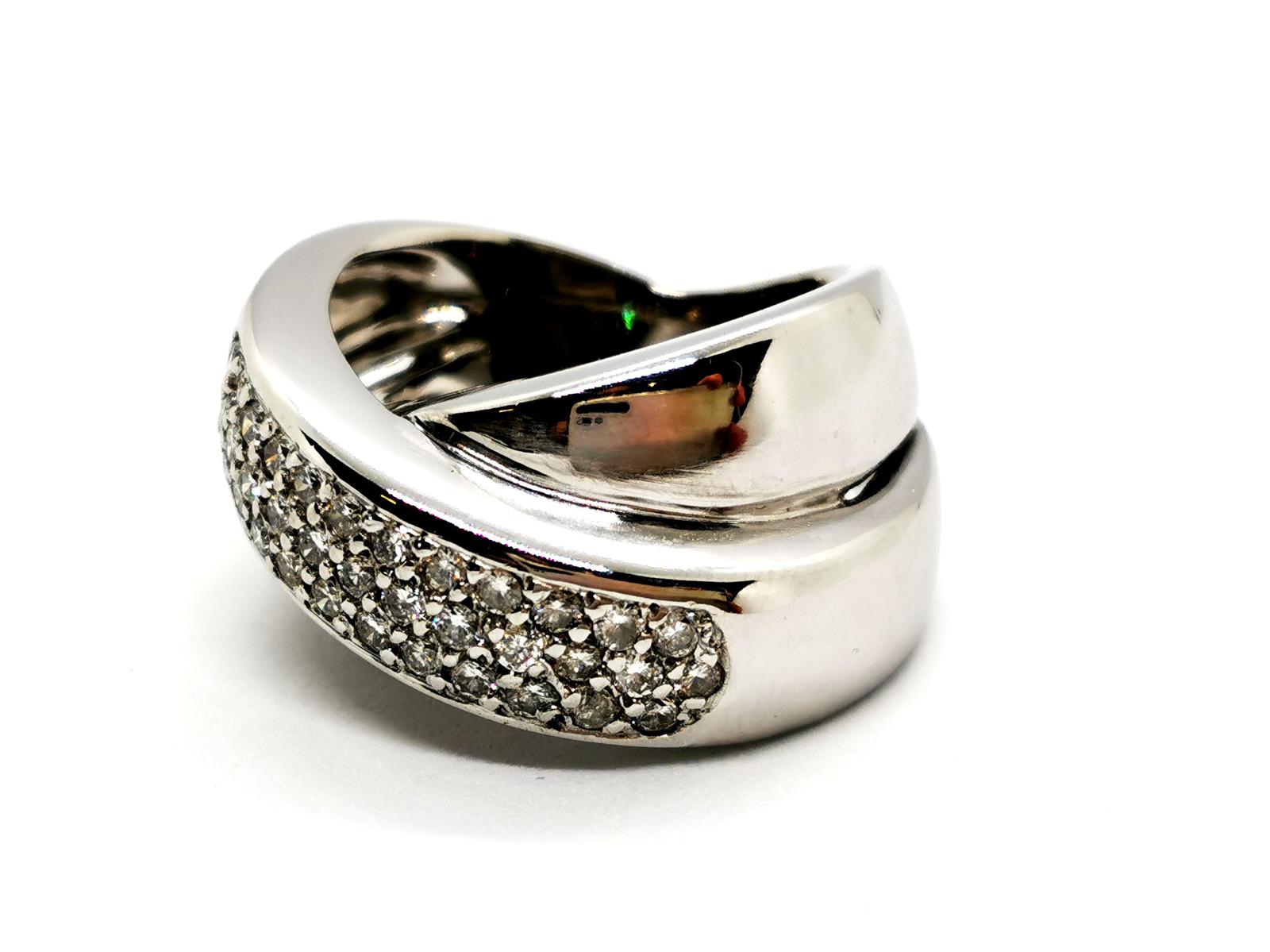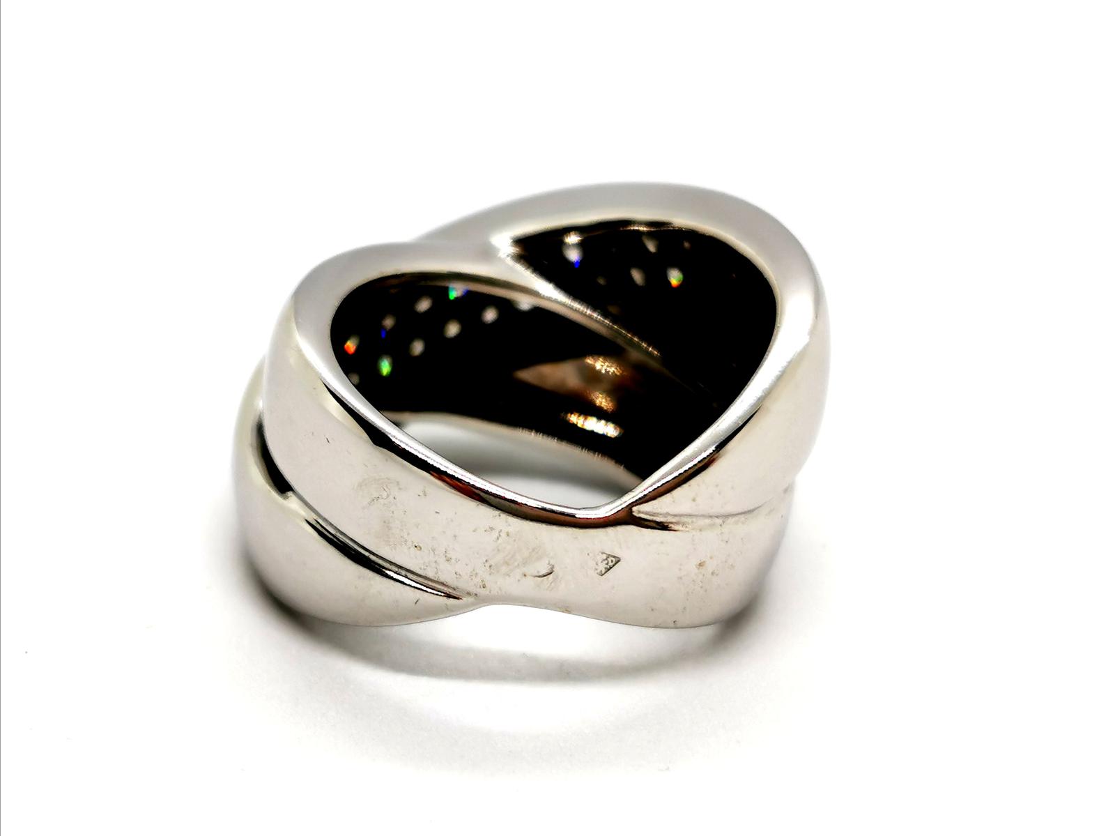 Ring in 750 thousandths (18 carat) white gold. paved with 37 diamonds. brilliant cut. for a total weight of approximately 0.74 ct. finger size: 52. width on top: 1.23 cm. total weight: 13.72 g. half-erased eagle's head hallmark. excellent condition